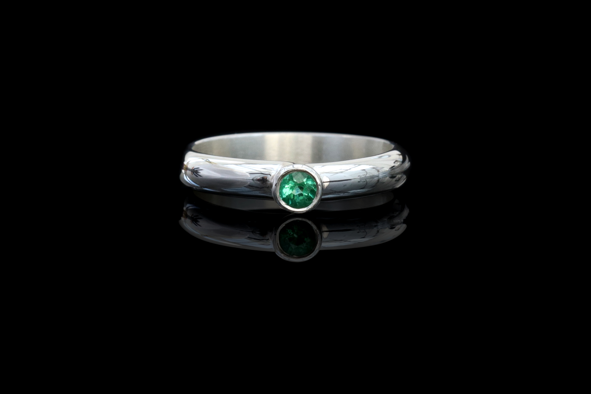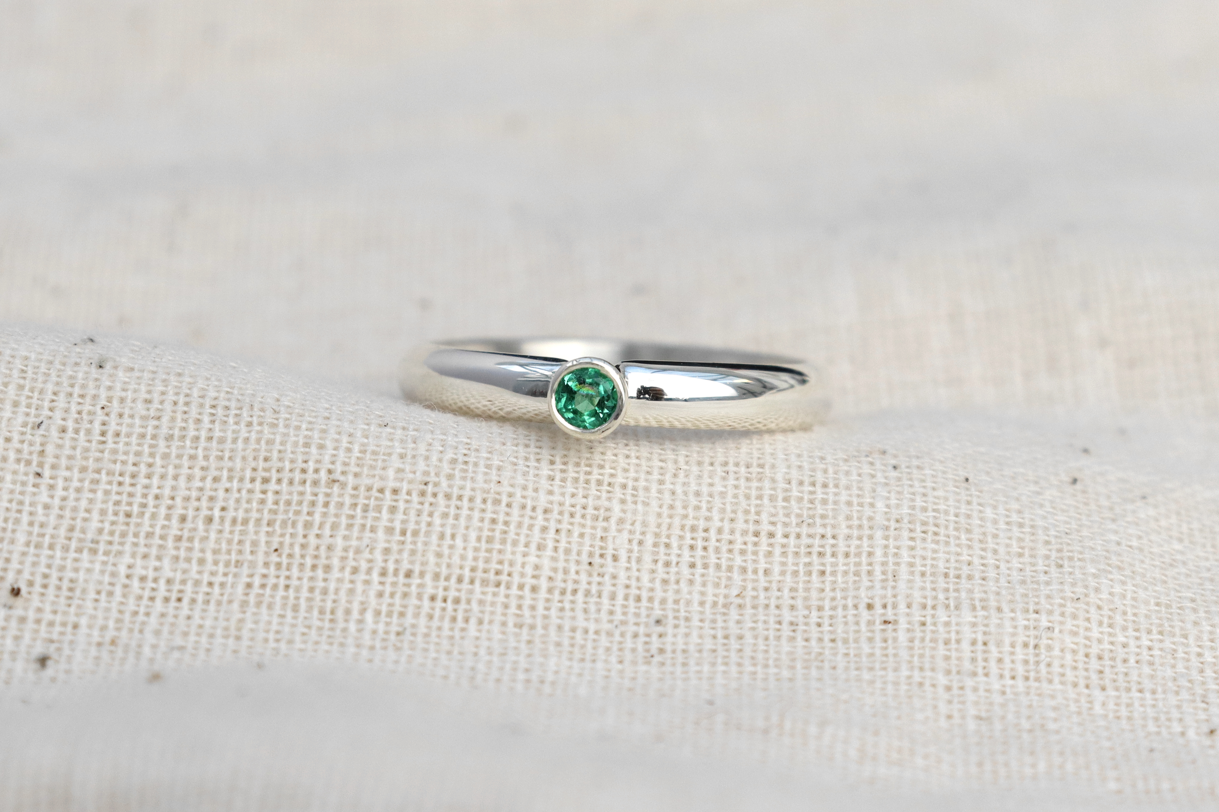 This is a Sterling silver ring with a stunning fine Emerald. The gemstone is a vibrant and translucent green. This ring makes for a gorgeous engagement or promise ring, as well as a beautiful gift to someone special.