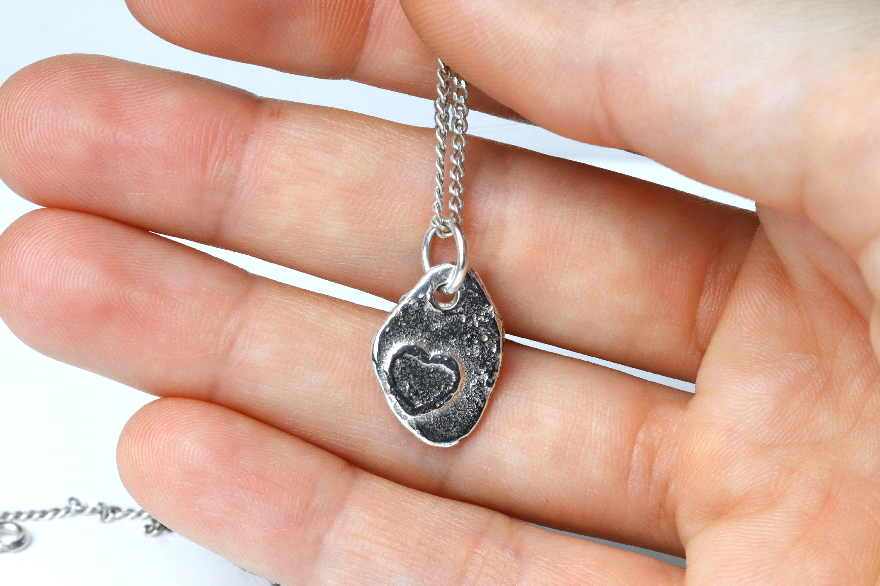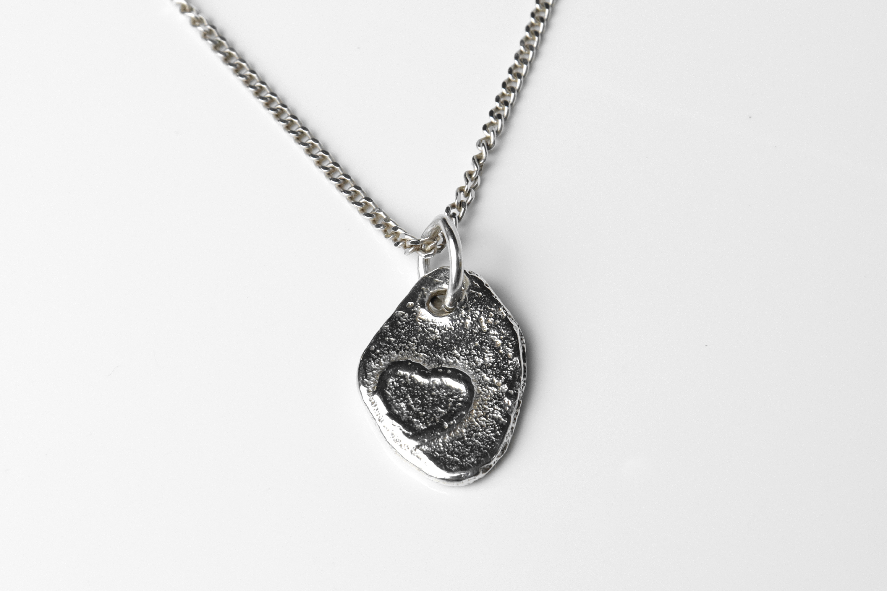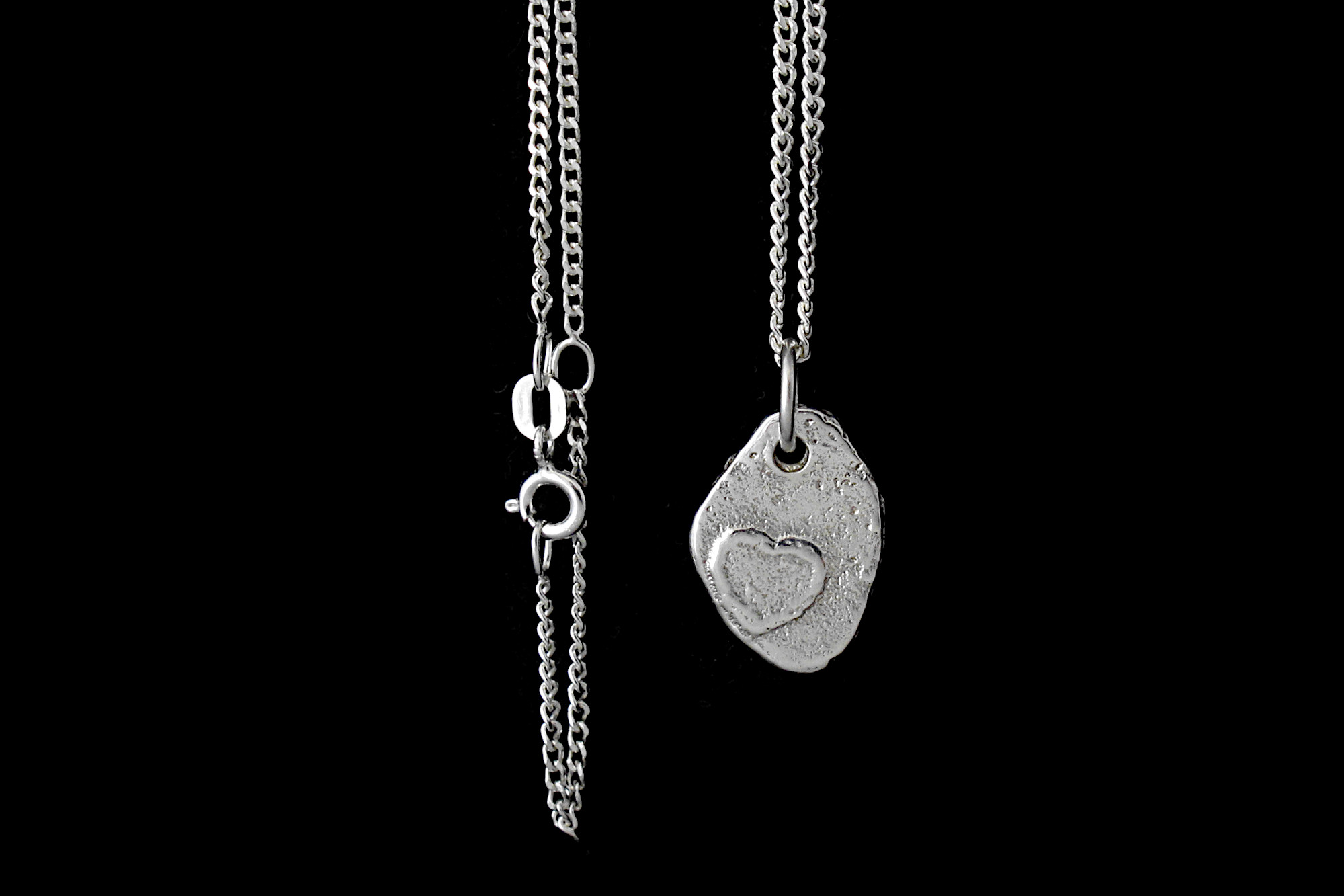 This is a rustic Sterling silver pendant necklace with an adjustable chain, perfect as a gift to a loved one. Unlike most traditional love themed jewellery, this one is a less traditional and more alternative style for those who enjoy something different.