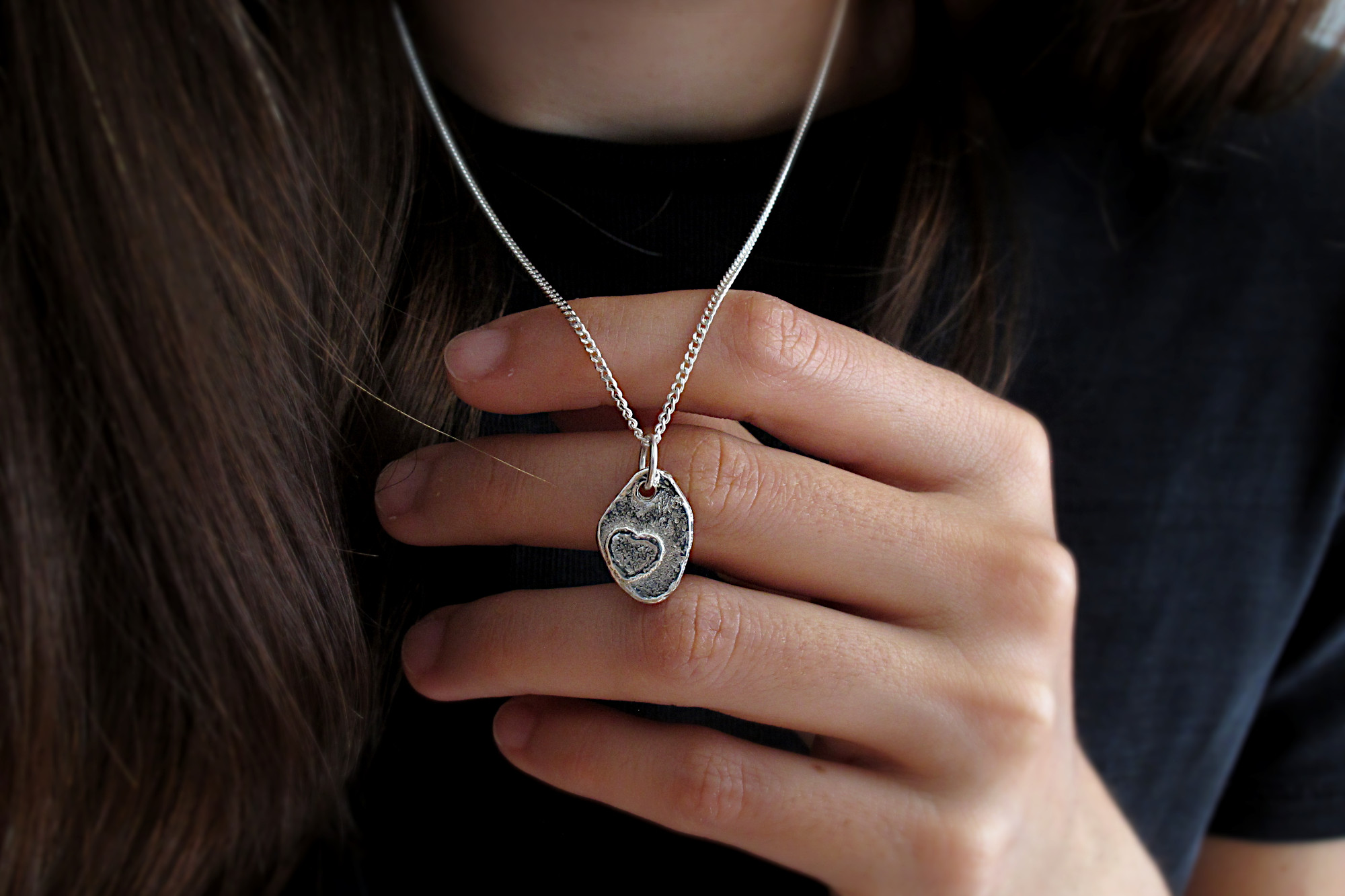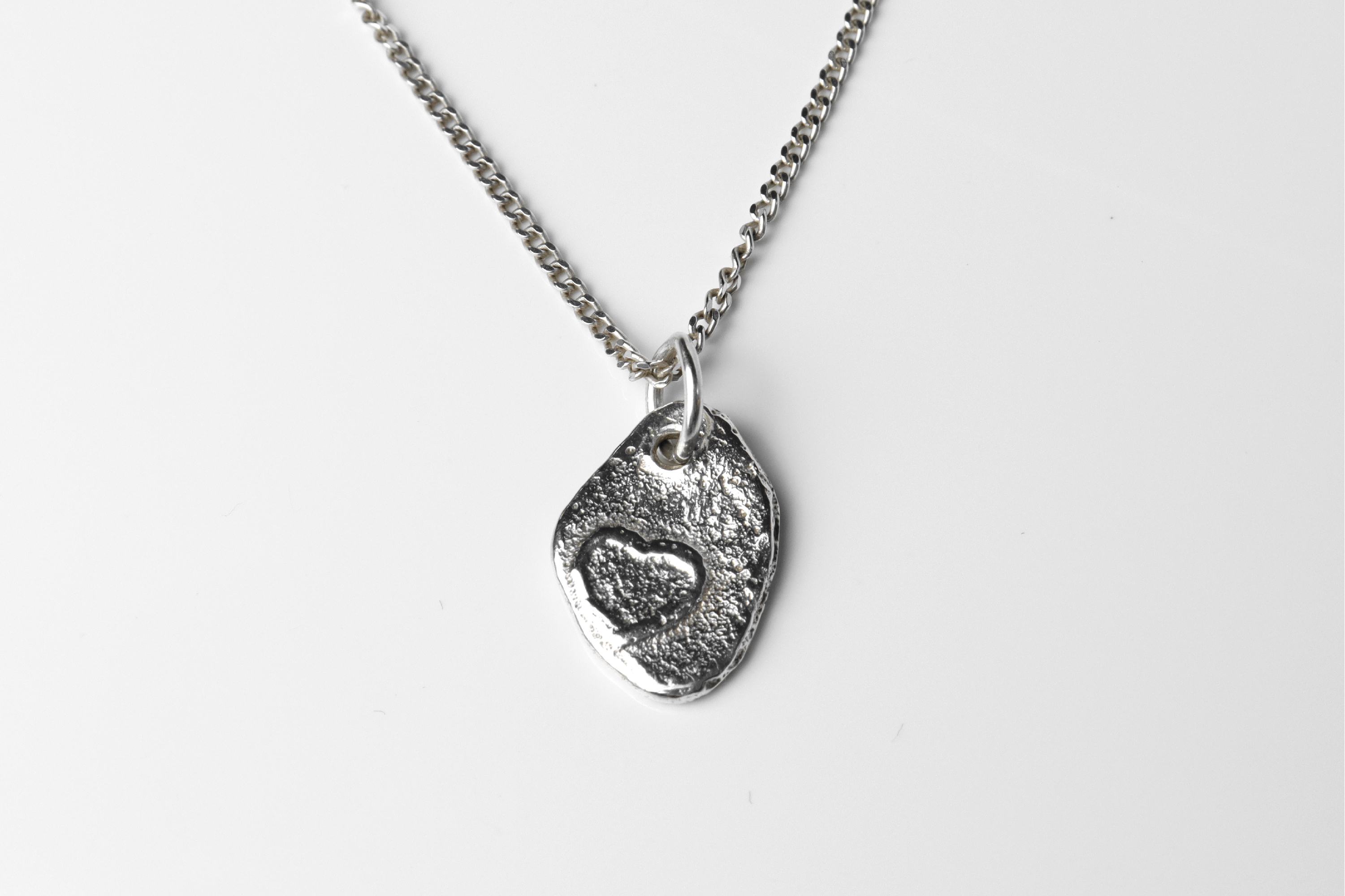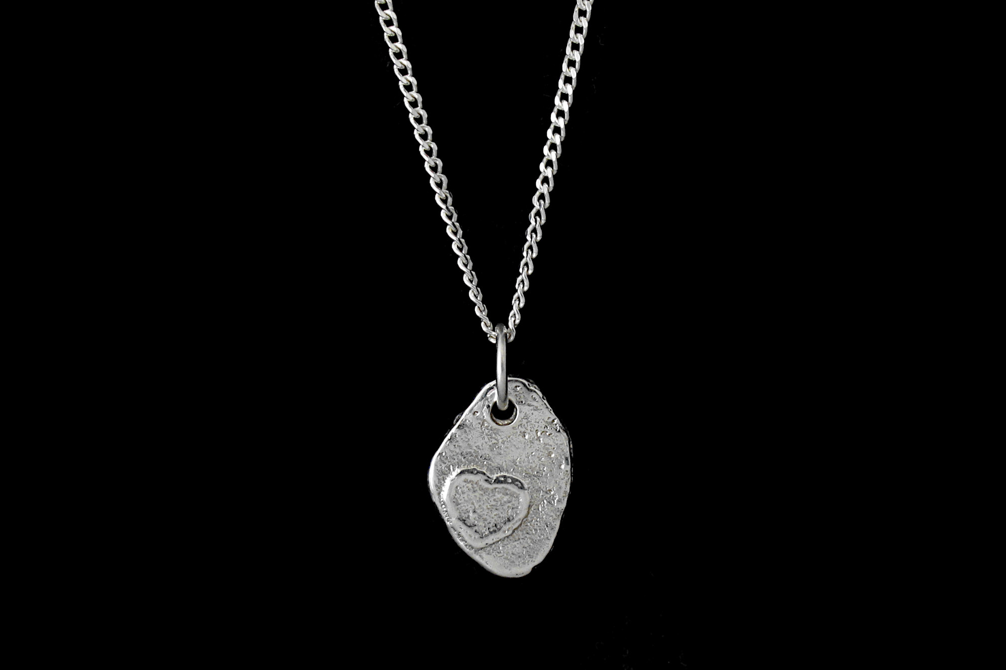 This is a rustic Sterling silver pendant necklace with an adjustable chain, perfect as a gift to a loved one. Unlike most traditional love themed jewellery, this one is a less traditional and more alternative style for those who enjoy something different.