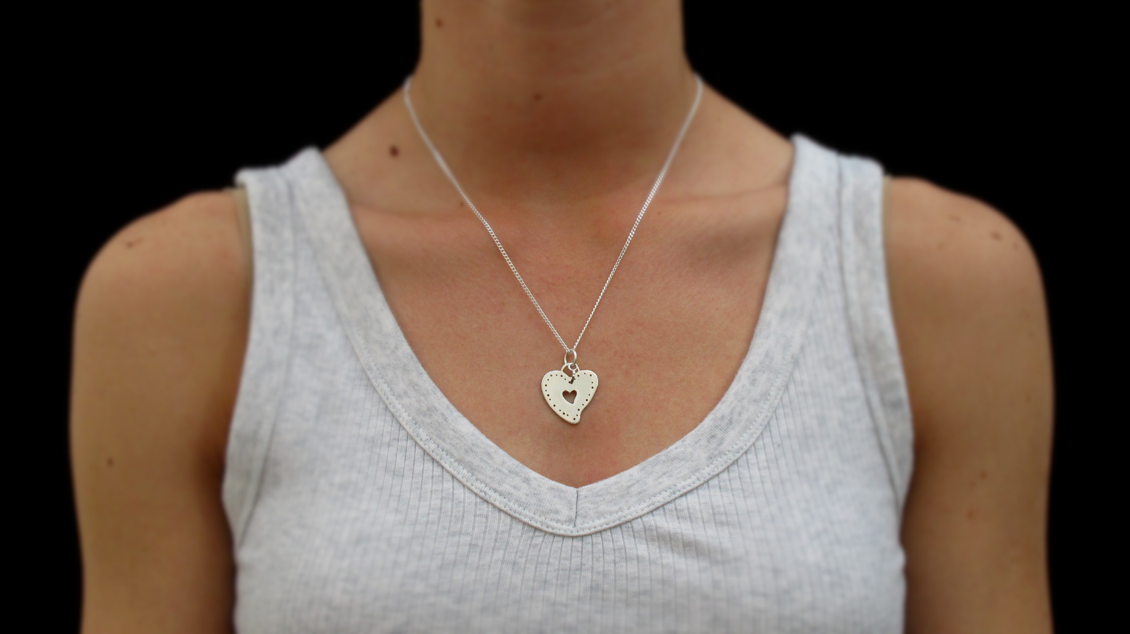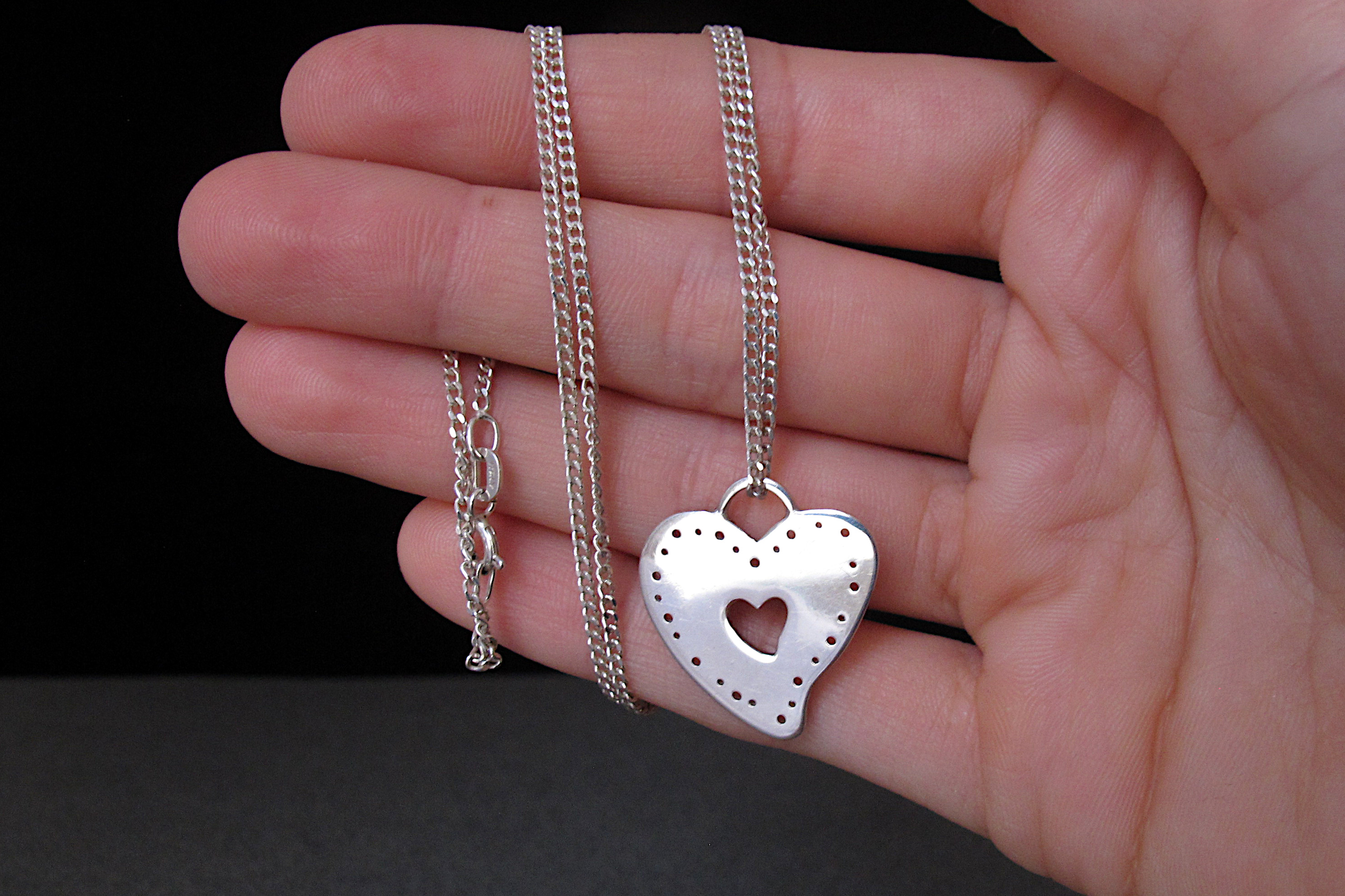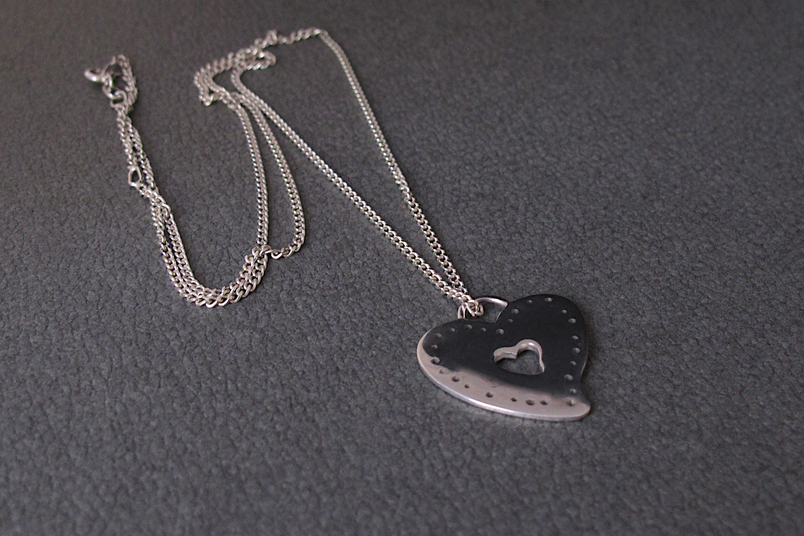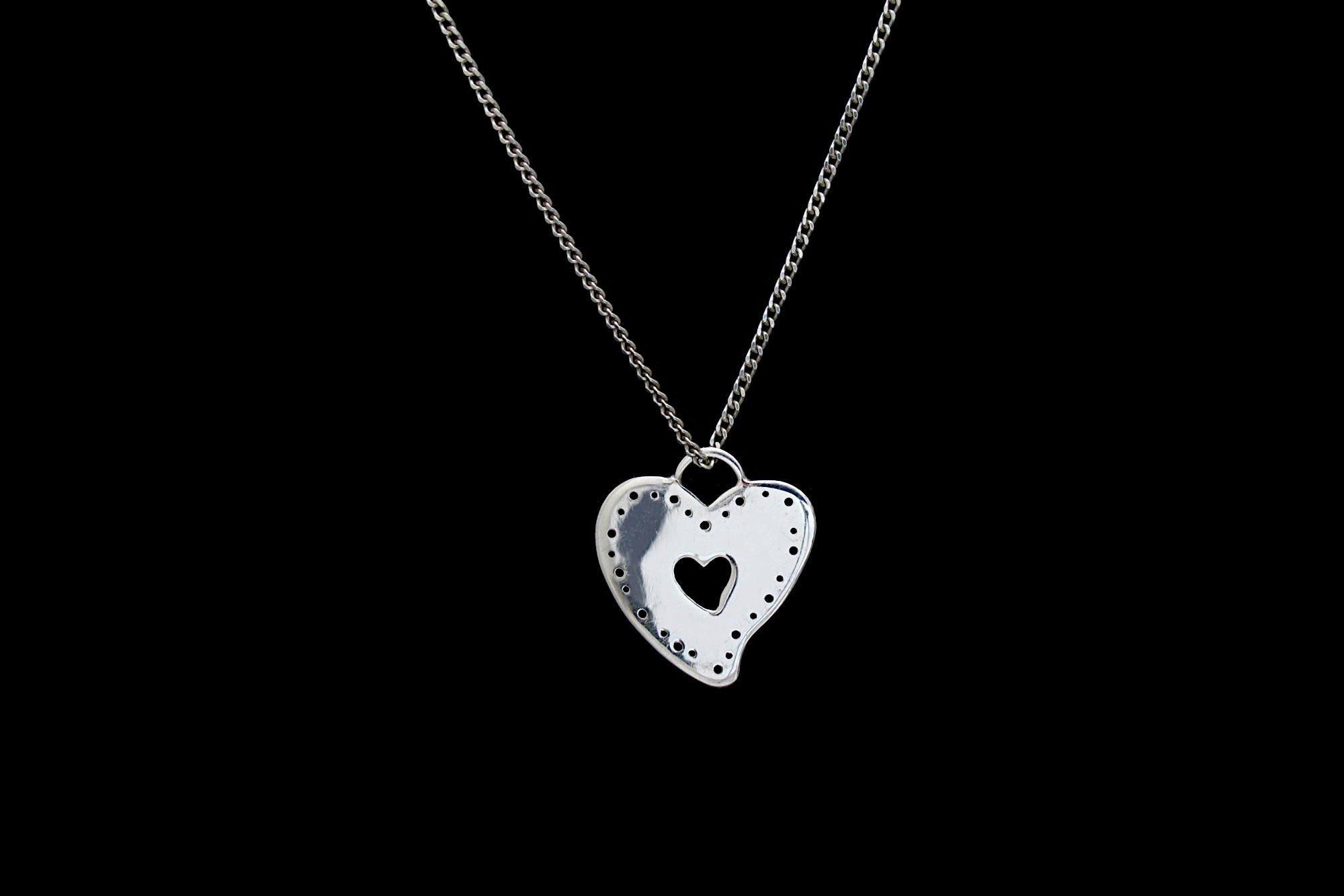 Handmade Sterling silver heart-shaped pendant with an adjustable Sterling silver curb chain.