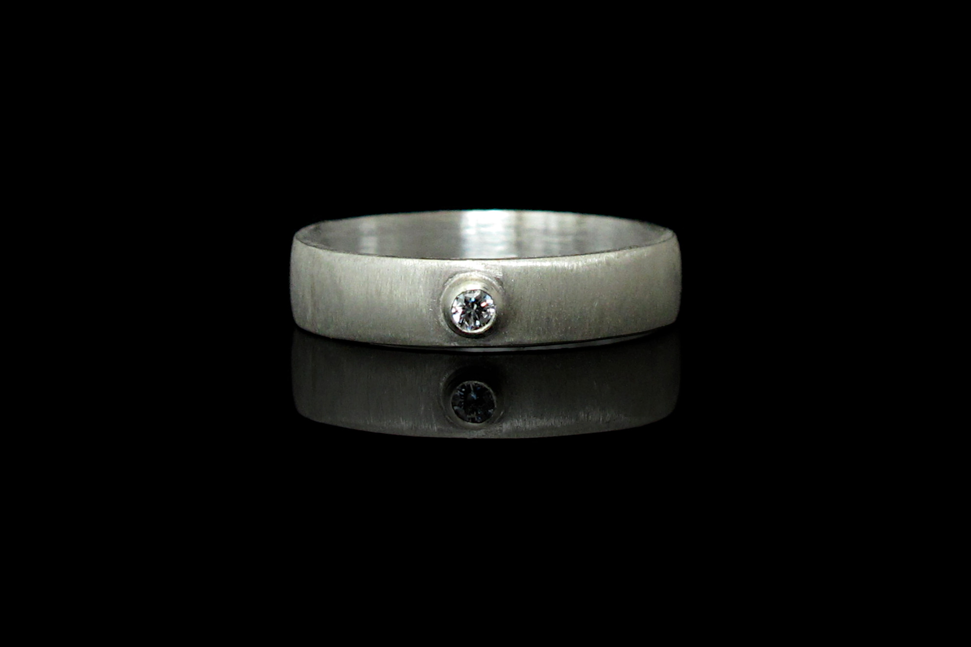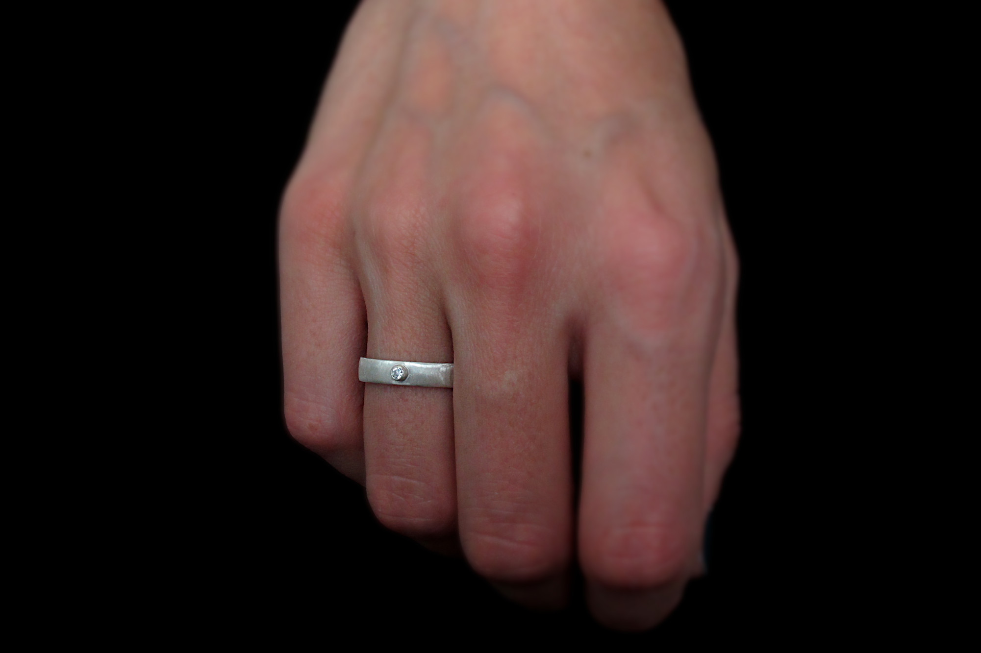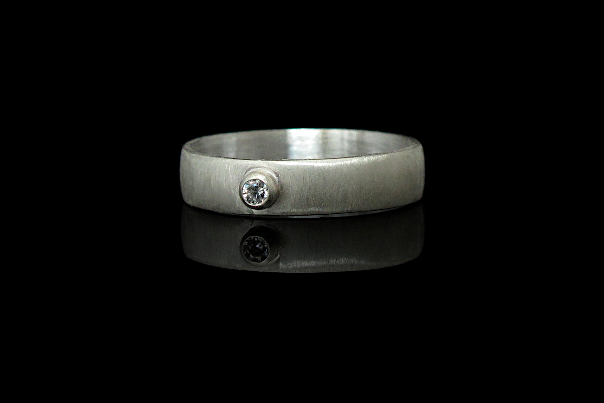 Handmade Sterling silver ring with a small CZ in a bezel. This ring has a satin finish for a minimalist look.