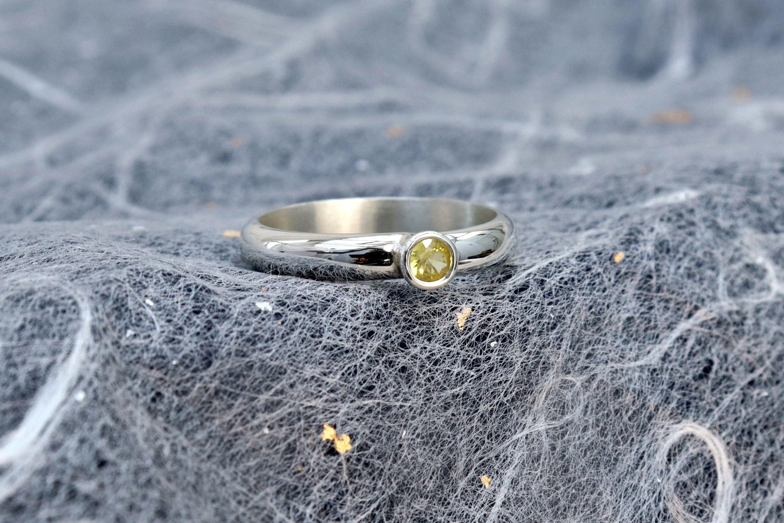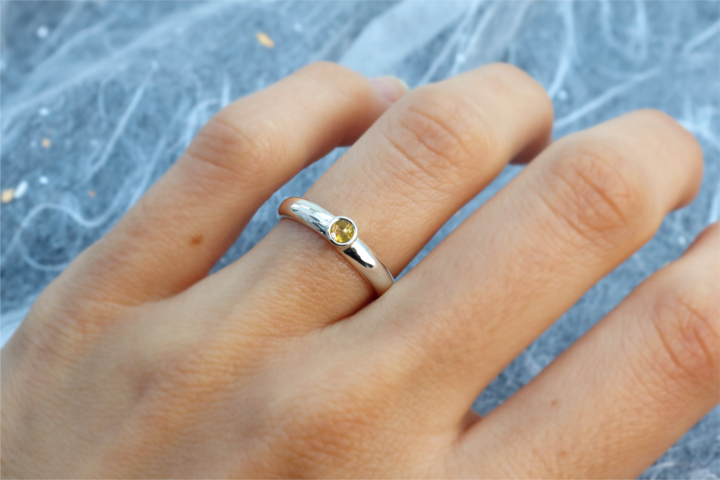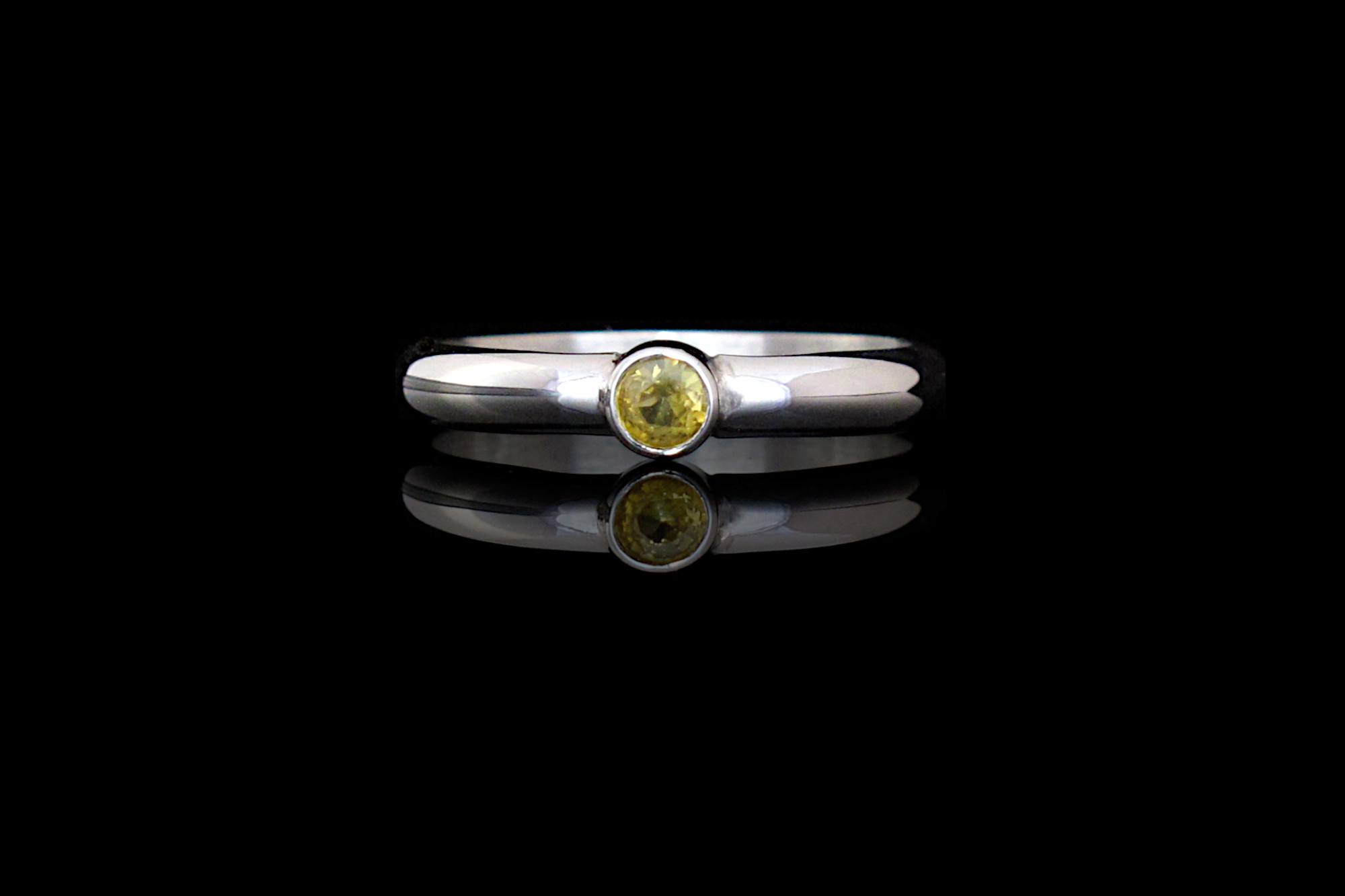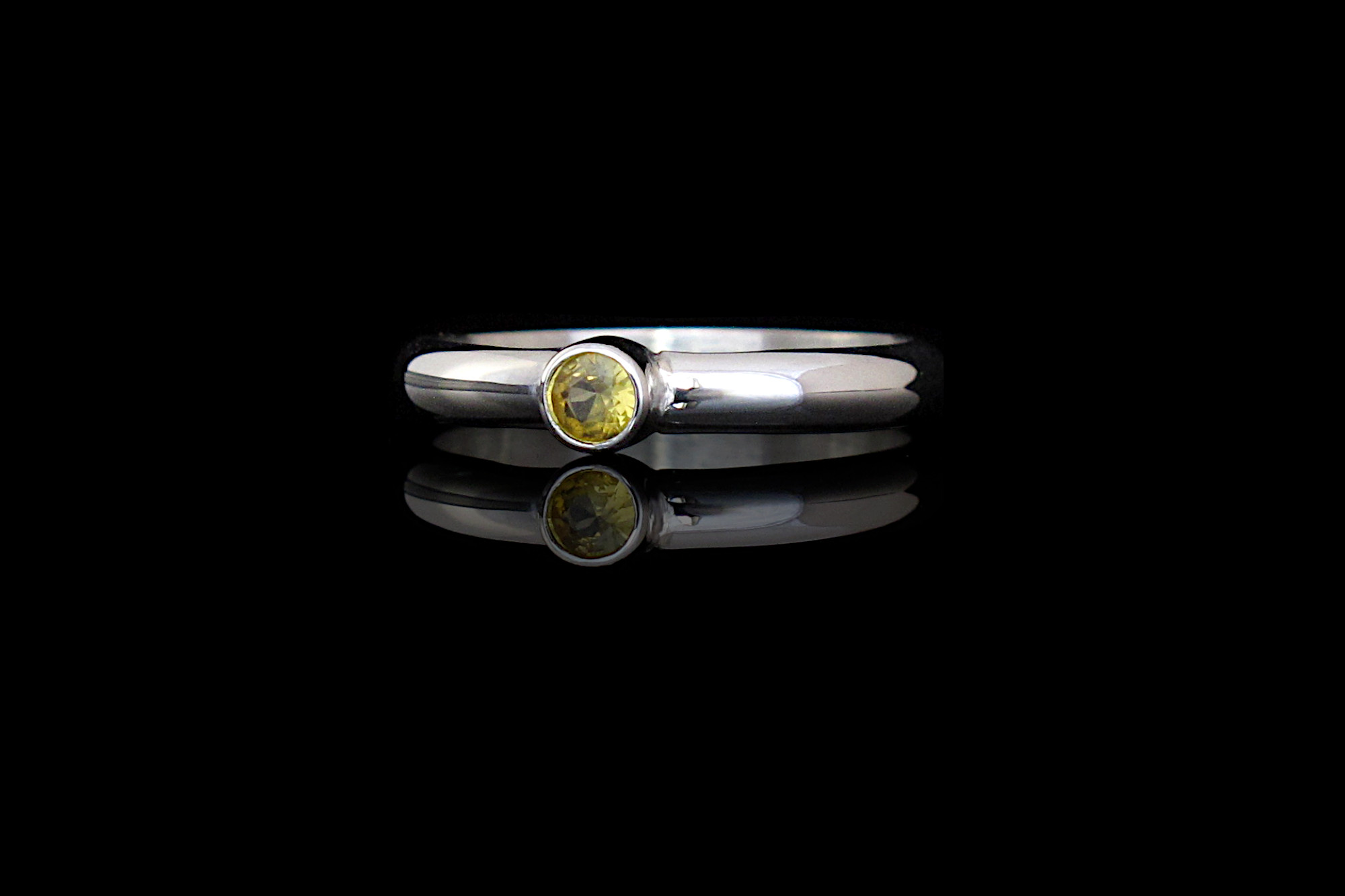 This is our Sterling silver ring with a genuine diamond cut yellow Sapphire. This ring has a D profile, making it a comfortable ring for everyday wear. The stone is a bright translucent yellow Sapphire that compliments many skin tones. The ring has an elegant and minimalist look, and it looks great both on its own or stacked with other rings.